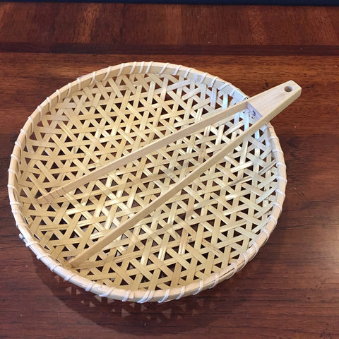This handcrafed basket is open weave style.